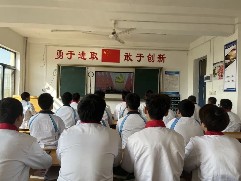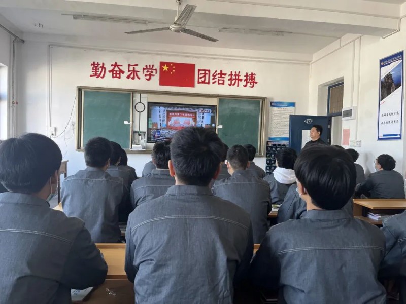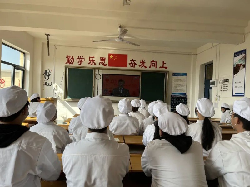 在收看直播过程中,师生聚精会神听报告、全神贯注做笔记。