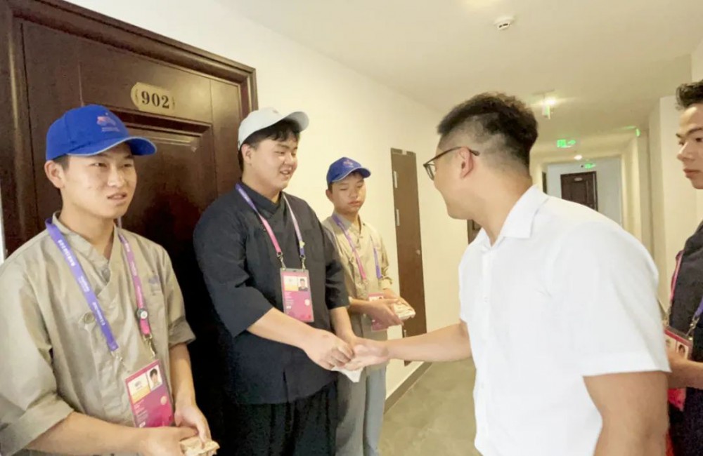 随后李助理随着中班同学们一起共同进入亚运村看望上班的学生,认真倾听学生在岗位上的收获,勉励同学们要提高觉悟、珍惜机会、努力学习、树立远大志向、扎实专业技能。同学们纷纷感谢领导的关心和鼓励,表示会以积极向上的态度对待学习和生活,奋发进取,不辜负师长们的期望,随后李助理与所有老师在亚运村合影留念。