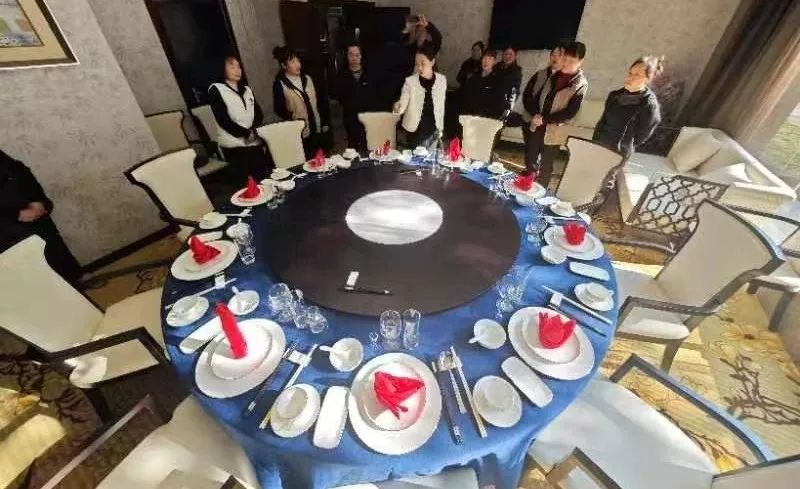 理论讲解后,进行餐饮服务实操培训。刘老师亲自在餐厅现场指导和规范服务人员餐饮服务礼仪及有关内容实操练习。