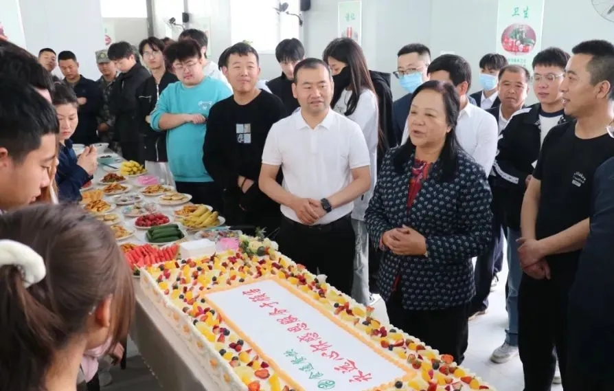 食通餐饮公司为学生准备了免费自助餐与开业蛋糕,在食通餐饮负责人引领下,院长王新丽为食通餐饮公司开业蛋糕切下第一刀。