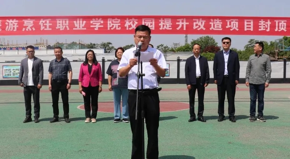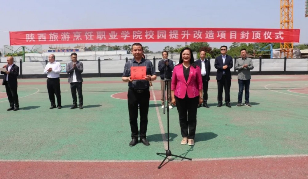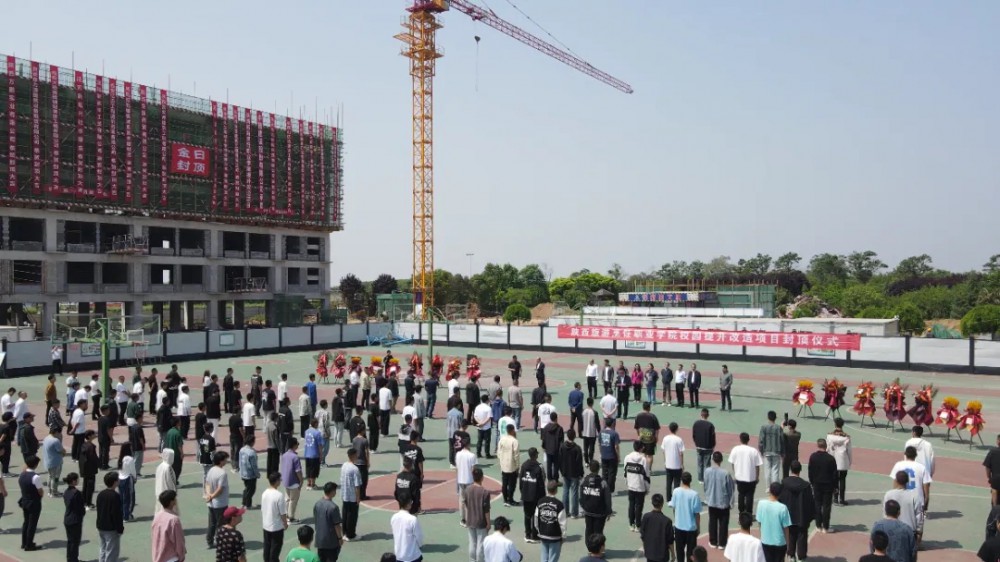 5月6日,学院校园提升改造项目综合楼、公寓楼的封顶仪式在学院篮球场隆重举行。学院理事会理事长王新艳等领导、学院院长王新丽、学院党委书记朱选朝、院长助理丁勇军、院长助理李彤、工会主席张金平、中格建设股份有限公司白向武董事长、陕西博大立源项目管理有限公司副总经理郭裕彪、陕西山亿达建设工程有限公司等26家公司代表出席封顶仪式,学院部分教师和学生代表共计两百余人参加活动。仪式由副院长杨文利主持。