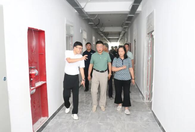 领导一行实地查看了教学楼、学生公寓房间、公共走廊等相关建设区域,详细了解了教学楼、学生公寓楼内部及公共区域的施工进度和整体装修情况。细致查看了工程进展、建筑内部结构设计、工程质量及配套设施建设等,全面了解校区工程建设的总体情况,并在工地项目部召开了新教学楼工程建设现场推进会。