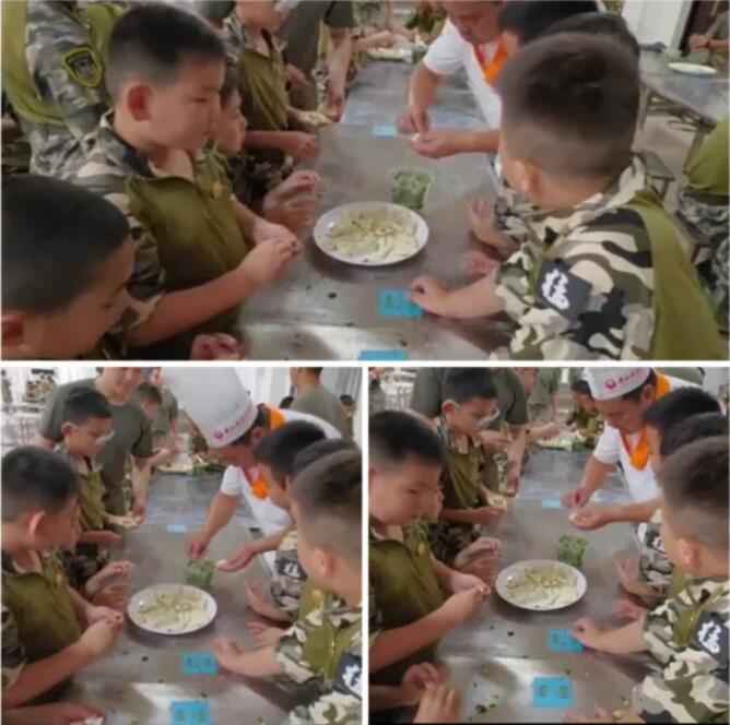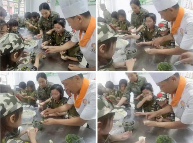 从馅料制作到皮料制作,从拿皮上馅到捏制成型,帮助指导官兵、军娃制作形态各异的传统美食饺子,如耳朵形、元宝形、月牙形等。不仅锻炼了孩子们的动手能力,还让军娃们体会到了劳动的乐趣与意义。