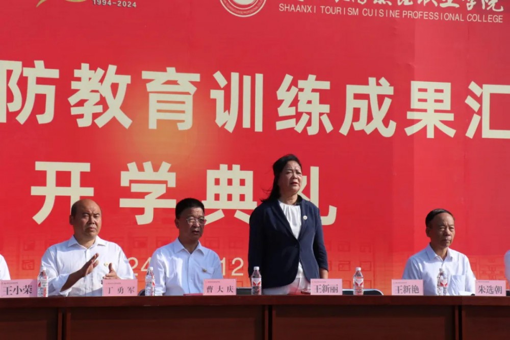 王新丽院长代表全校师生向2024级新生表示了最衷心的祝贺和最热烈的欢迎。对2024级新生的国防教育训练成果给予了高度评价。