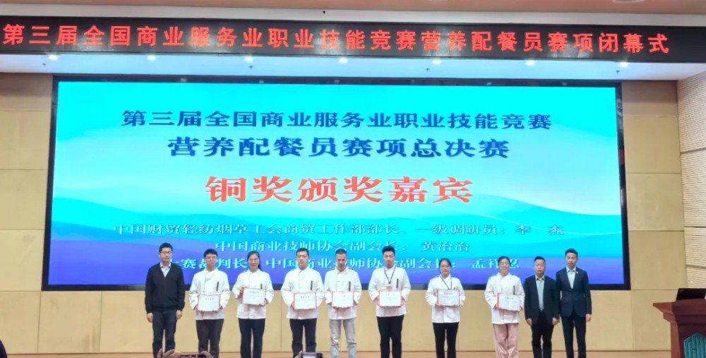 12月1日上午,中国商业技师协会的专家们参加了第三届全国商业服务业职业技能竞赛营养配餐员赛项闭幕式。大会上宣布了,第三届全国商业服务业职业技能竞赛营养配餐员赛项总决赛及颁奖情况,所有的协会领导、政府代表、企业代表、专家们及裁判长、裁判员们都见证这一荣耀时刻。