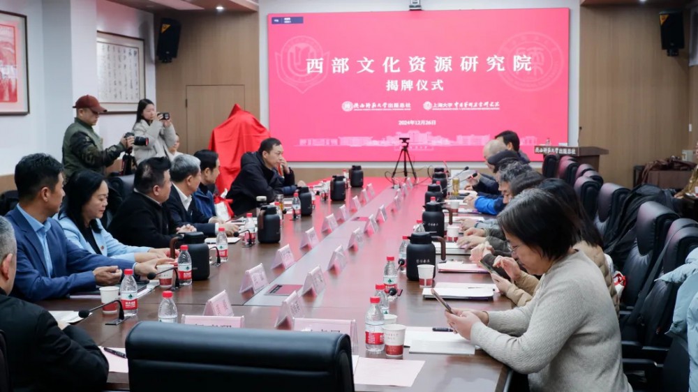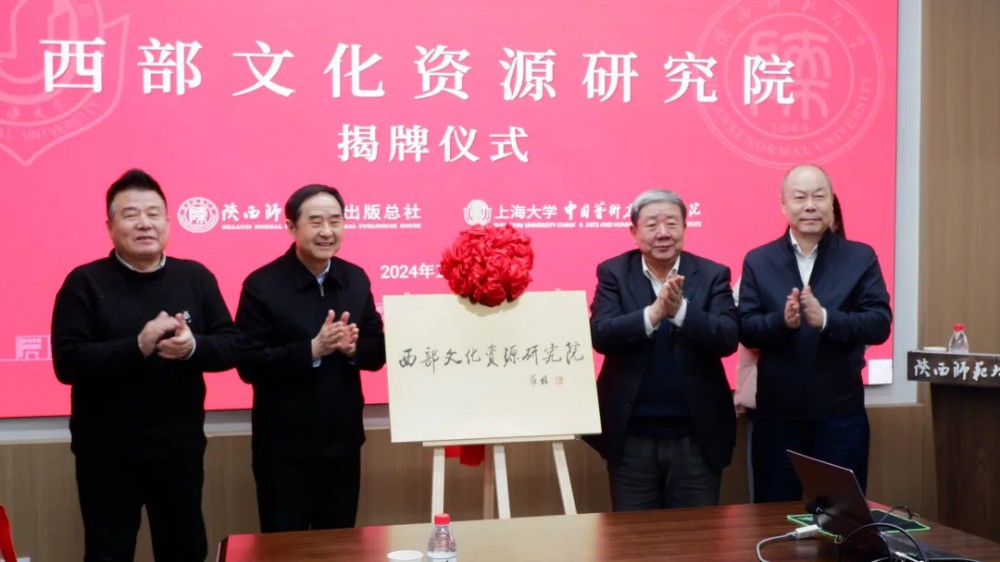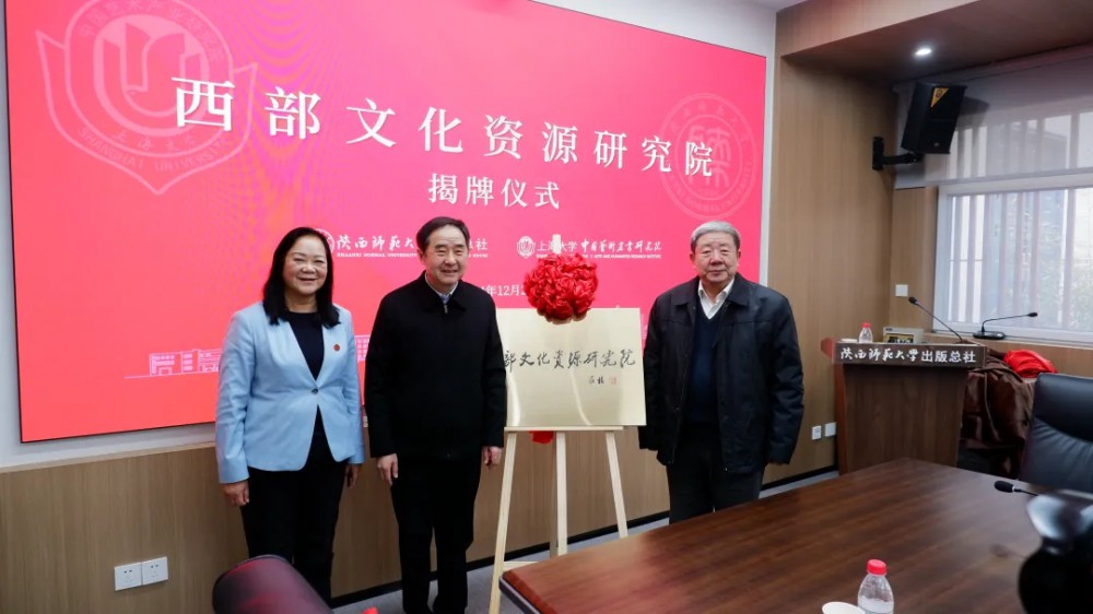 中国文联办公厅原主任、中国民间文艺家协会分党组书记、上海大学之中国艺术产业研究院院长罗杨,国家文物局原副局长张柏、上海大学中国艺术产业研究院执行院长罗宏才、陕西师范大学出版总社社长刘东风,共同上台为西部文化资源研究院揭牌。