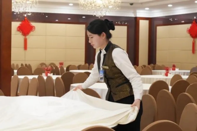 在为期一个月的实践学习中,学生们面临前所未有的挑战与机遇。他们不仅要在紧张而有序的工作环境中迅速适应,还要时刻保持高度的责任心和使命感,确保每一个细节都达到标准。从会议场地的布置到茶歇的安排,从客房的整洁度到餐饮的服务细节,学生们都倾注了极大的热情和心血。他们以高站位的思想觉悟,深刻理解此次服务工作的政治意义和社会责任,以高标准的工作要求,对待每一项任务,力求完美;以高要求的质量把控,确保服务的每一个环节都能让参会者感受到宾至如归的温馨与专业。