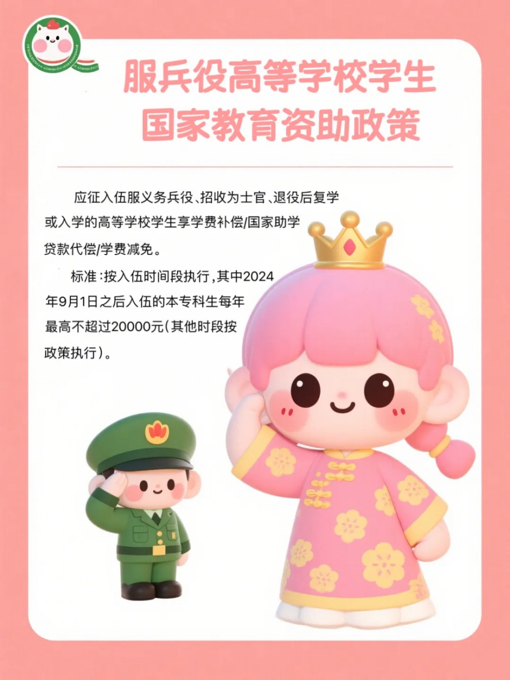 标准:按入伍时间段执行,其中2024年9月1日之后入伍的本专科生每年最高不超过20000元(其他时段按政策执行)。