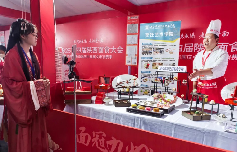 9月28日,由咸阳市人民政府主办,咸阳市商务局、咸阳市供销合作社、中共咸阳市渭城区委及咸阳市渭城区人民政府承办的2025第四届陕西面食大会暨咸阳老街国庆中秋商文旅消费季活动在咸阳老街举行。beat365平台官方网站烹饪艺术学院面点专业亮相此次面食大会,为咸阳老街添加了学院独有的秦味。