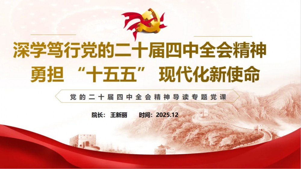 为深入学习贯彻党的二十届四中全会精神,切实把全院师生的思想和行动统一到党中央决策部署上来,准确把握“十五五”时期发展的战略机遇与使命任务,近日,院长王新丽以“深学笃行党的二十届四中全会精神,勇担‘十五五’现代化新使命”为主题,面向全院教职工、师生党员代表、青年骨干作专题宣讲报告。