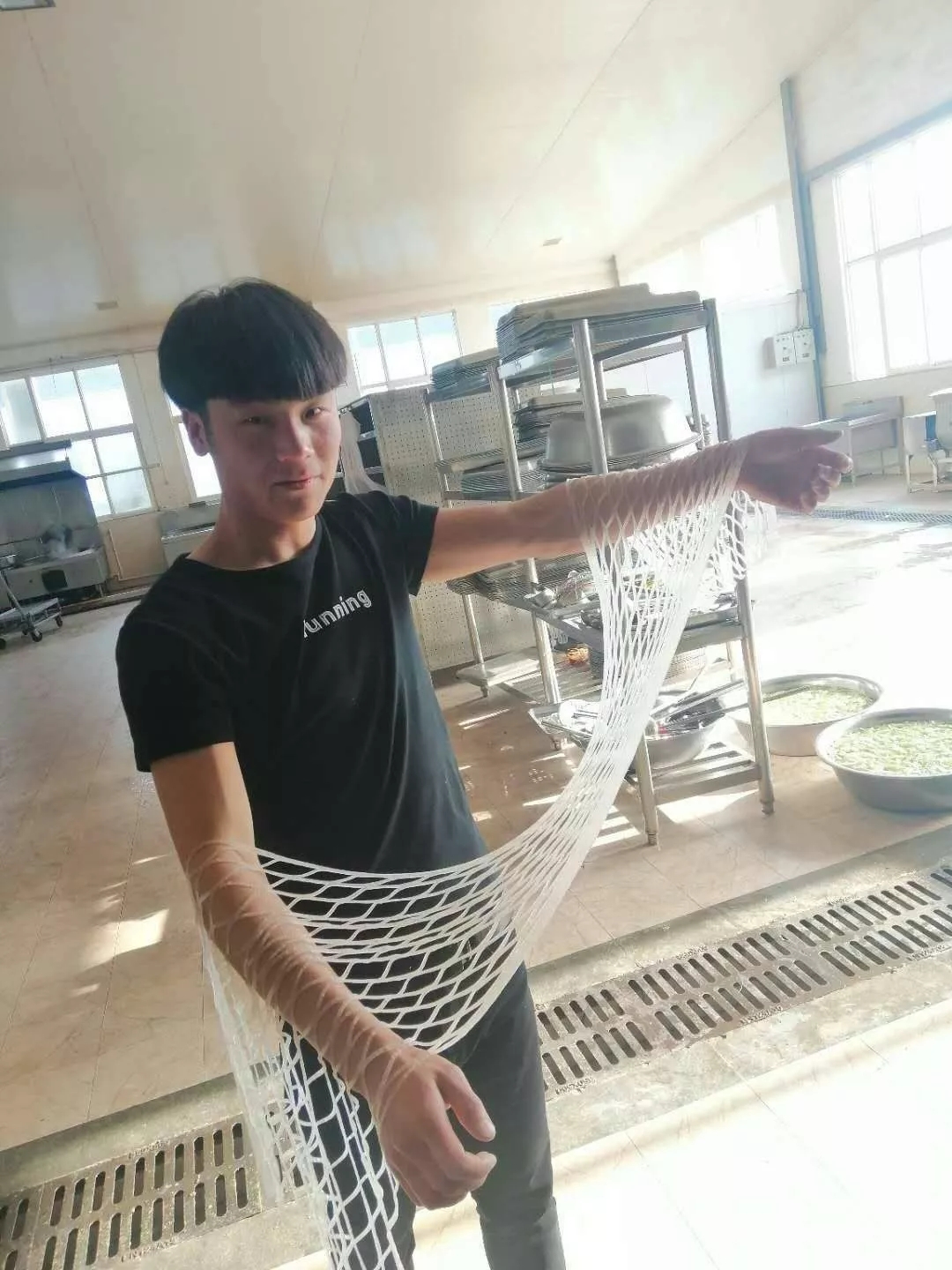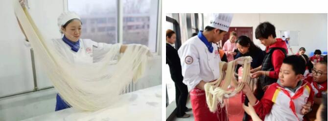 看!练工棚里总有每天忙碌的身影,不用说形态一体的拉锅表演、形似柳叶的刀削飞面、也不用说那比发丝还匀的龙须细面。多年如一日的刀工练习,单单是一段舞面就能给你视觉冲击!唯有“视觉盛宴”四字能表达此情此景!