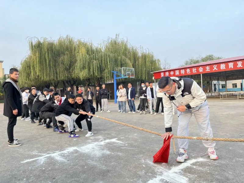 本次比赛以班级为单位,每班各选出15名学生参赛。同学们齐聚操场,排着整齐的队伍,磨拳擦掌之中期待着即将开始的拔河比赛。赵弈、宋潇鹏老师分别担任高职、中职班级拔河比赛的裁判。