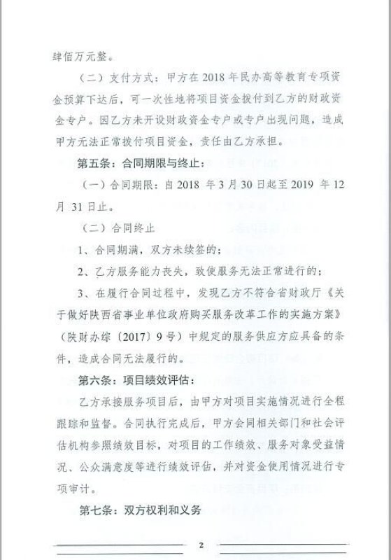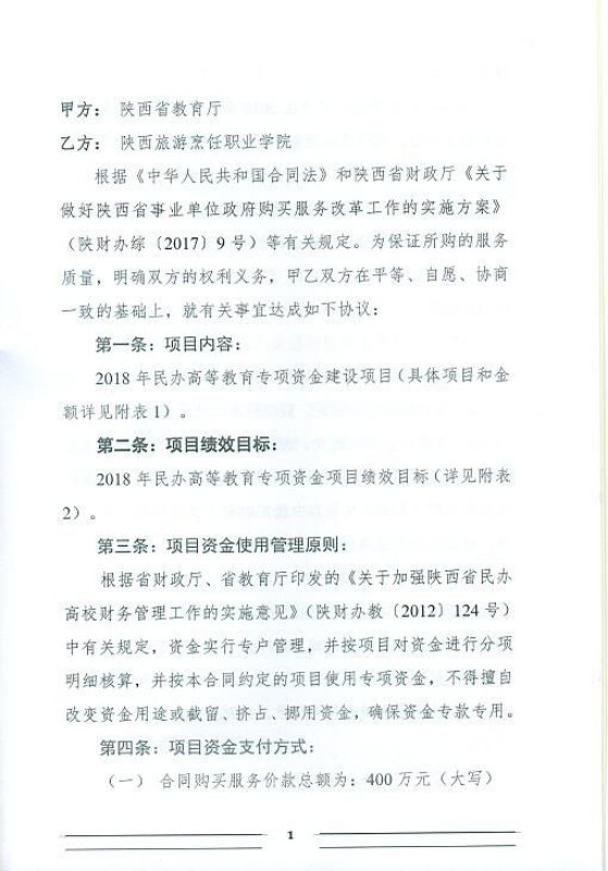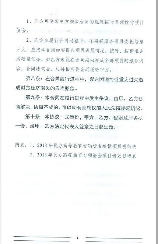 民办高等教育专项资金政府购买服务合同书